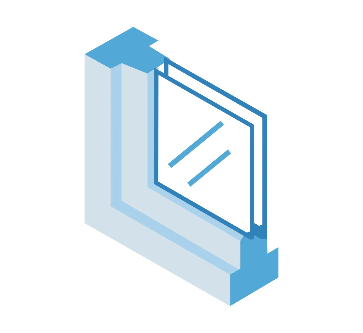 Dos vidrios separados por una capa de sales secantes con propiedad aislante para mejor control del clima y efectos sonoros.